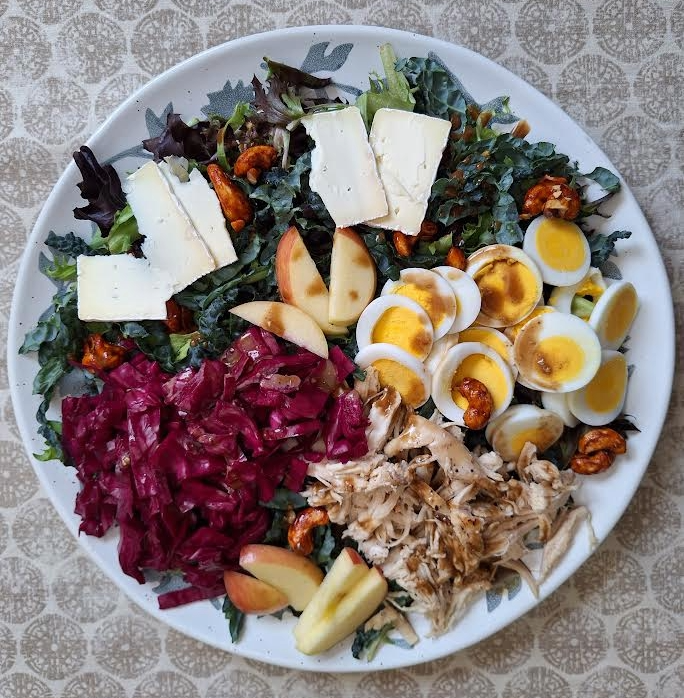 Here is a flexible seasonal salad that you can compose depending on your tastepreferences and what you discover at the market. Recipe by Andrea GromPrep Time: 20 minutesServes: 4 people Ingredients*Ingredients currently available at the farmers’ market ● 3 cups salad greens* (e.g., lettuce, mustards, arugula, microgreens and/or kale)● 2