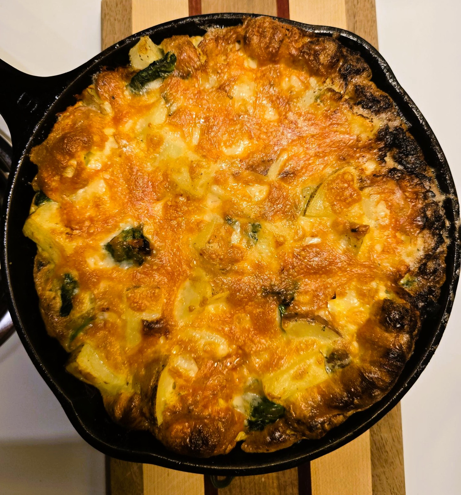 When bellies are rumbling and time is of the essence, consider a hearty frittata. It’s easy toimprovise once you get a hang of the technique. Recipe by Andrea GromPrep time: 15 minCook time: 15-20 minMakes 6-8 servings Ingredients *Ingredients currently available at the farmers’ market ● 3 large potatoes*, peeled