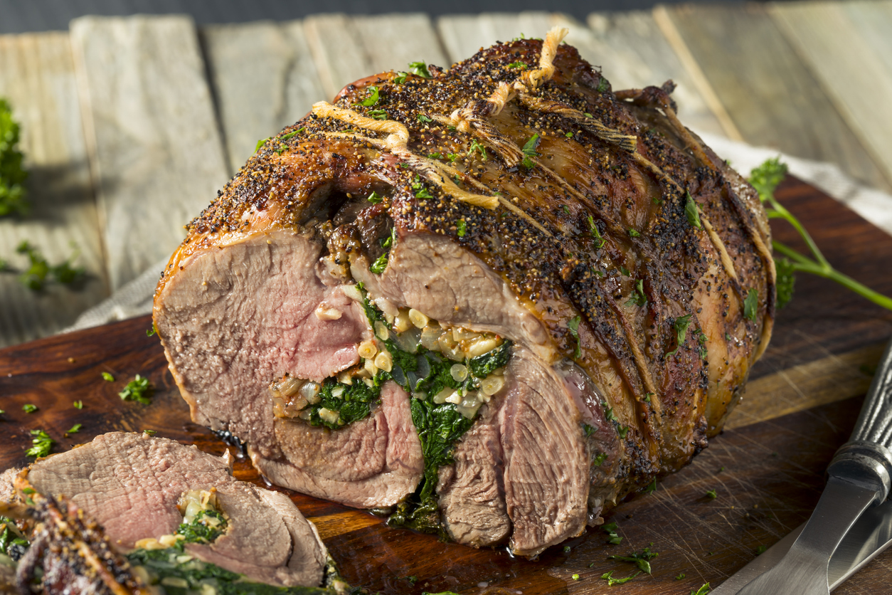 A stuffed lamb roast makes a savory, elegant holiday centerpiece — and this slow-cookedshoulder is surprisingly approachable. Adapted from the recipe by Recipe Tin EatsPrep Time: 40 minutesFreeze time: 3 hrsCook Time: 3 hrsServes: 5 Ingredients*Ingredients available at the farmers’ market ● 3 lb boneless lamb shoulder*● 1 ½ tsp